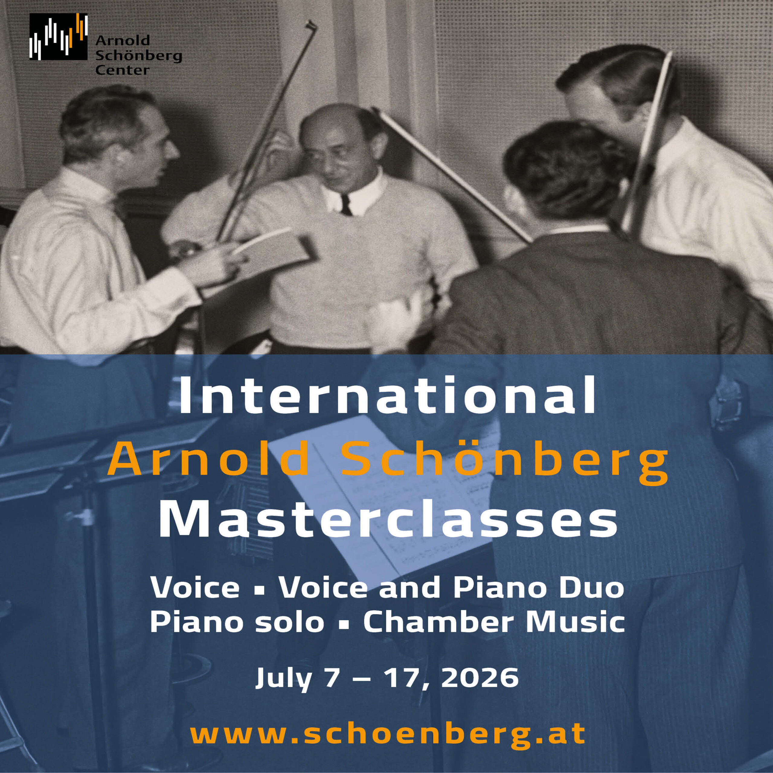 Nell’estate 2026 (7-17 luglio 2026) l’Arnold Schönberg Center die Vienna organizza delle masterclass gratuite per musiciste e musicisti emergenti nei settori canto • lieder-duo • pianoforte solista • musica da camera.